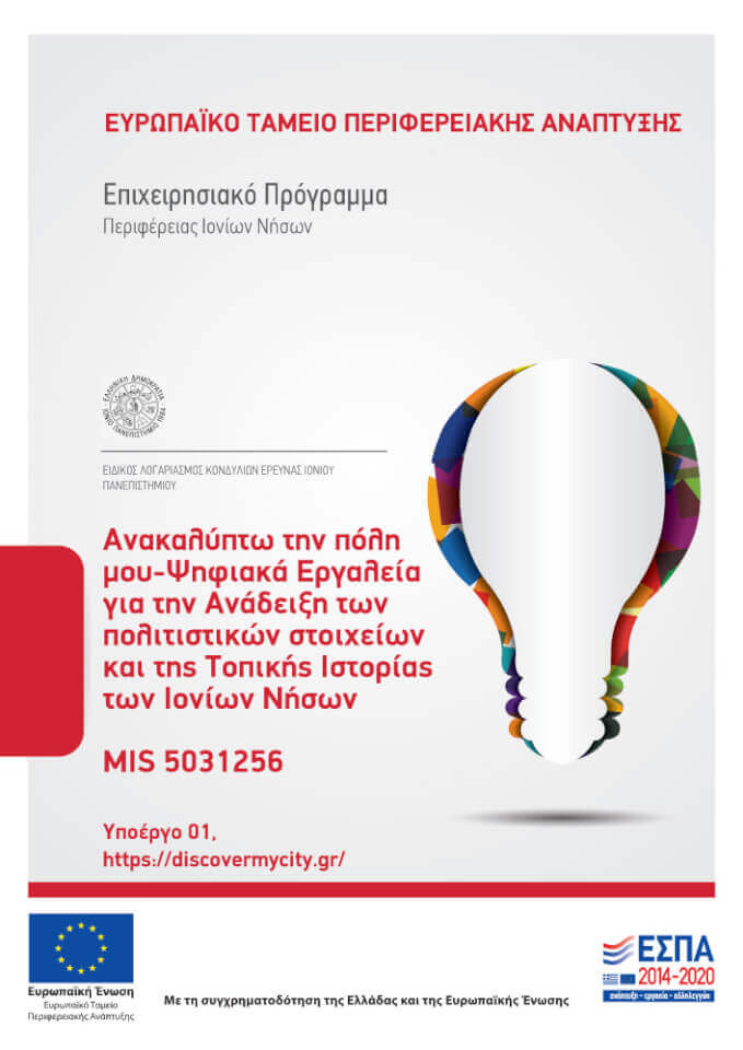 Το έργο "Ανάπτυξη ψηφιακών εφαρμογών της Πράξης "Ανακαλύπτω την πόλη μου" αποτελεί το Υποέργο 01 της Πράξης "Aνακαλύπτω την πόλη μου-Ψηφιακά Εργαλεία για την Ανάδειξη των πολιτιστικών στοιχείων και της Τοπικής Ιστορίας των Ιονίων Νήσων" η οποία υλοποιήθηκε με την σύμπραξη του ΕΛΚΕ Ιονίου Πανεπιστημίου και την Εφορεία Αρχαιοτήτων Κέρκυρας με σκοπό την ανάπτυξη μιας σειράς ψηφιακών εργαλείων περιήγησης, καθώς και προσαρμοσμένων ψηφιακών παιχνιδιών στην Περιφέρεια Ιονίων Νήσων (Π.Ι.Ν.), που έχουν ως στόχο την ανάδειξη του τοπικού υλικού και άυλου πολιτισμού τόσο στους κατοίκους όσο και στους επισκέπτες.